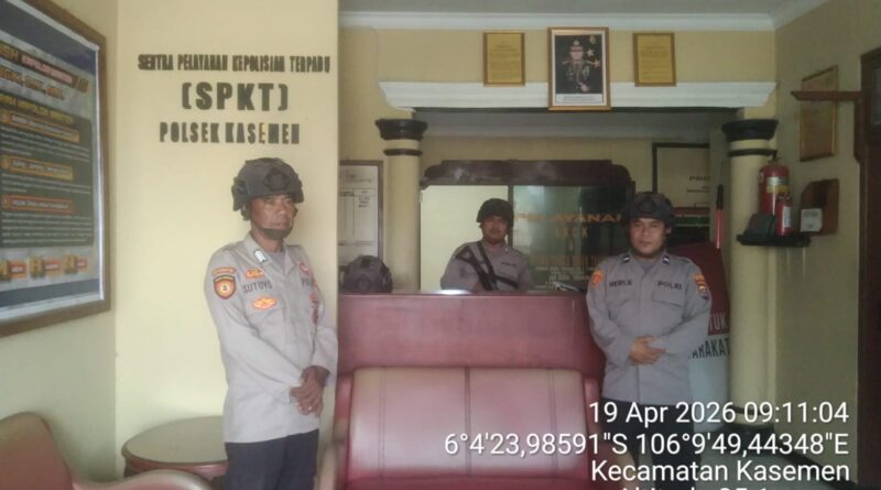 Anggota Polsek Kasemen Polresta Serkot Melakukan upaya nyata Pengamanan di Kantor Polsek Kasemen.
