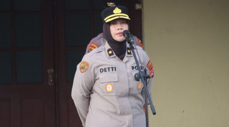 POLRESTA SERKOT_ Kepala Bagian Sumber Daya Manusia (Kabag SDM) Polresta Serang Kota, Kompol Detti Ratnasari, S.H., memimpin apel pagi yang dilaksanakan di Lapangan Hitam Polresta Serang Kota pada Senin, 20/04/2026.