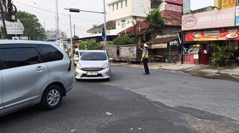 Gatur Pagi, Aiptu Aziz Muslim Laksanakan Pengaturan Lalu Lintas di Simpang Kebaharan
